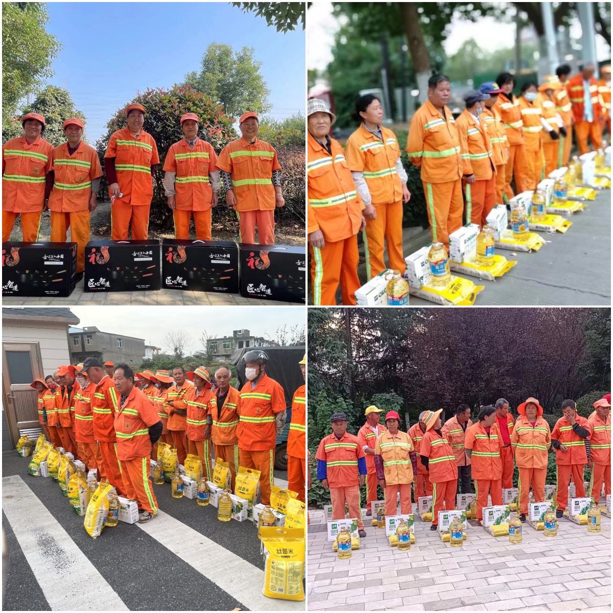 太阳集团股份深入环卫工人的工作一线,为环卫工人送去关爱与温暖。在关爱活动现场,太阳集团股份向辛勤工作的环卫工人们表示衷心的感谢,对他们为城市环境做出的贡献表示敬意。同时送上精心准备的礼品,包括锅具三件套、大米食用油有机奶等健康食品,希望他们在为城市美容的同时,也能照顾好自己的身体。